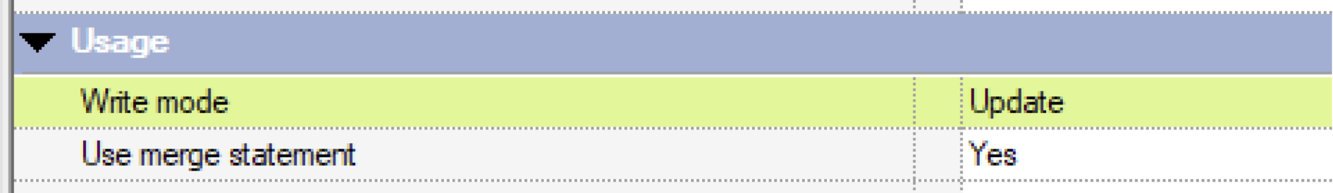Dieser Schreibmodus kann nur eingeschaltet werden, wenn das SQL durch DataStage generiert wird. Nur dann ist es möglich bei UPDATE oder DELETE die Einstellung „Use merge statement“ auf „Yes“ zu setzen.
