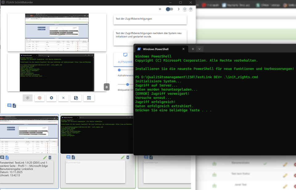 Die Output-Aufzeichnung läuft dabei parallel zur klassischen Schrittaufzeichnung. Sobald das Feature aktiviert ist, werden alle relevanten Ausgaben – beispielsweise aus der Windows-Kommandozeile, PowerShell, Terminalfenstern oder spezifischen Anwendungs-Logs – automatisch erfasst und in die Dokumentation integriert. Die Zuordnung zu den jeweiligen Benutzerinteraktionen erfolgt chronologisch und kontextbezogen, sodass ein vollständiges Bild des Prozessablaufs entsteht.
