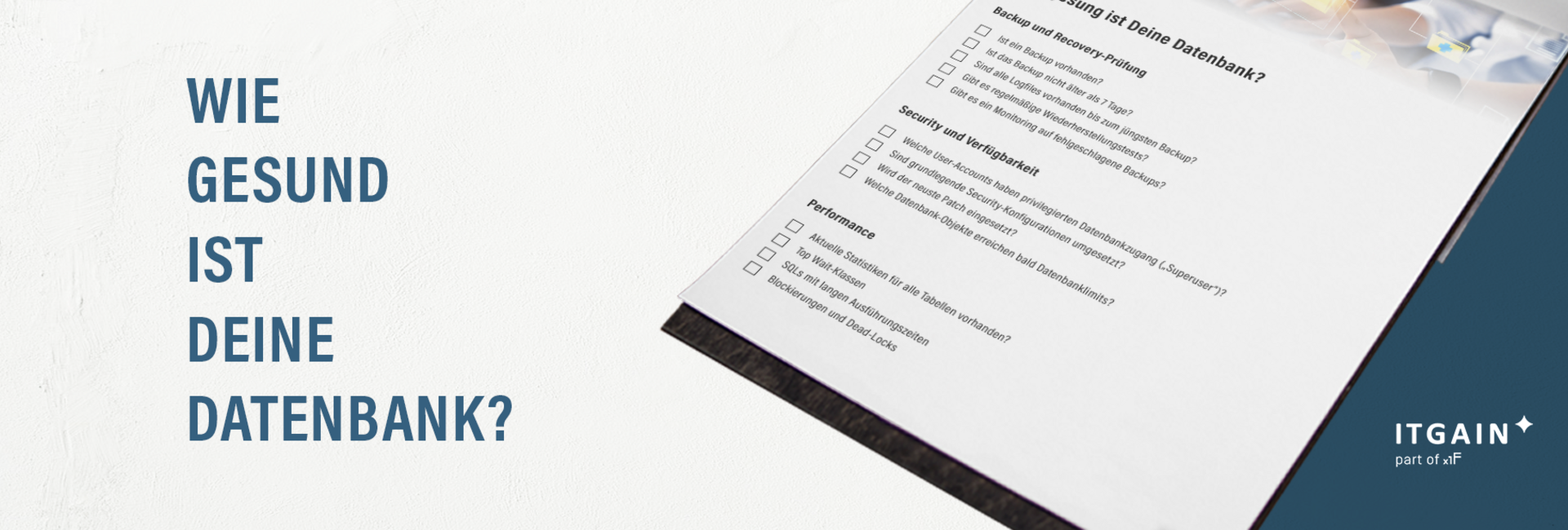 Deine Datenbank soll zuverlässig, sicher und leistungsstark sein – doch im Alltag fehlt oft die Zeit für eine gründliche Überprüfung. Genau hier setzt der ITGAIN Database Healthcheck an: Wir nehmen deine Datenbank unter die Lupe, decken Risiken und Potenziale auf und geben dir klare Empfehlungen, wie du mehr Stabilität und Effizienz herausholst.