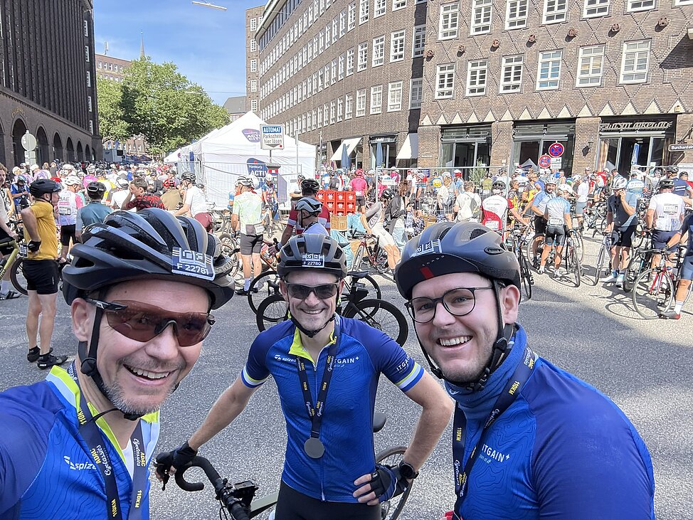 Am vergangenen Wochenende haben sich unsere Kollegen Alexander, Florian und Mathias gemeinsam der sportlichen Herausforderung der Hamburger Cyclassics 2025 gestellt – und damit ein großartiges sportliches ITGAIN Erlebnis geschaffen.